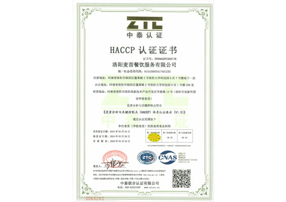 HACCP认证证书